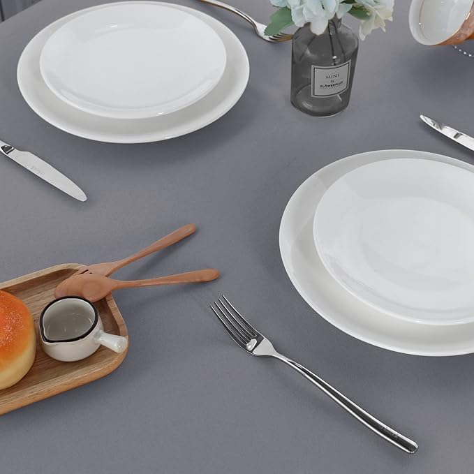 - MEASUREMENTS: This light grey table cloth is 60 inch wide and 84 inch long, perfect for standard 4ft table, providing 18 inch drop.