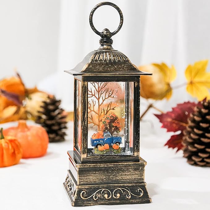 - Harvest trucks and pumpkin decoration snow globe lanterns are great themed decorations for the autumn harvest day. Perfect for fall harvest day, home fall decor, halloween. Perfect fall decorations for home.