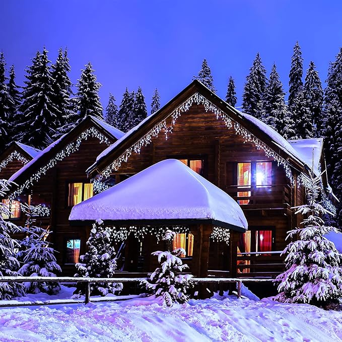 - 【Safe Use LED Icicle Christmas Lights】400 LED icicle lights,each Christmas icicle light adopts premium clear wire with insulation coating, which is corrosion-resistant, aging resistant. Strictly tested and meets the US requirements of string lights UL safety standards to ensure & maximize the safety. 29V low output voltage makes it safe enough for use. IP44 waterproof for indoor and outdoor use.