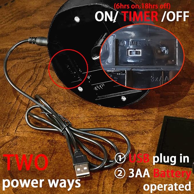 - 🎃【Two-way power】① Works with 3 AA Batteries.(Battery NOT included)② Works with a corded USB charger.(Charger NOT included), it works with 4.5V or 5V charger plug.