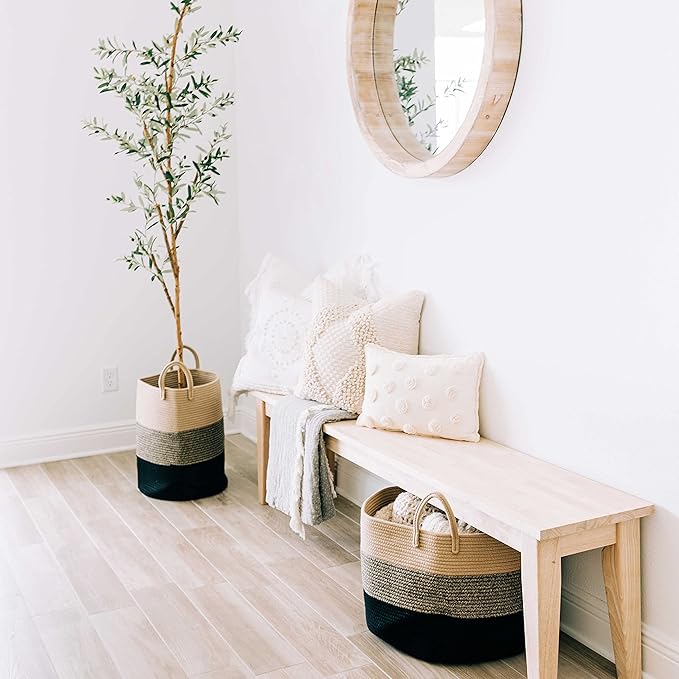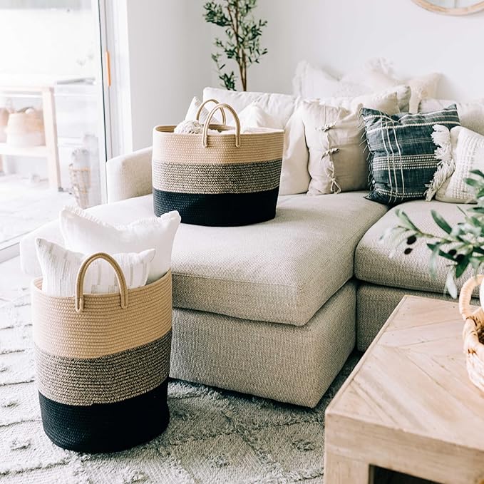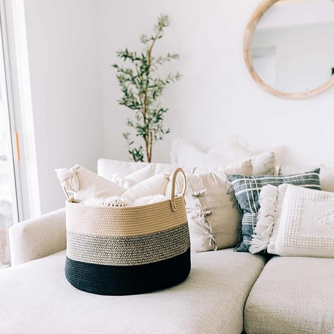 - Beautiful Addition to Your Boho Decor: Elevate your living room decor with this handwoven blanket basket. Neutral tones and minimalist design create a cozy, stylish vibe, perfect for farmhouse, Scandinavian, or boho decor aesthetics.