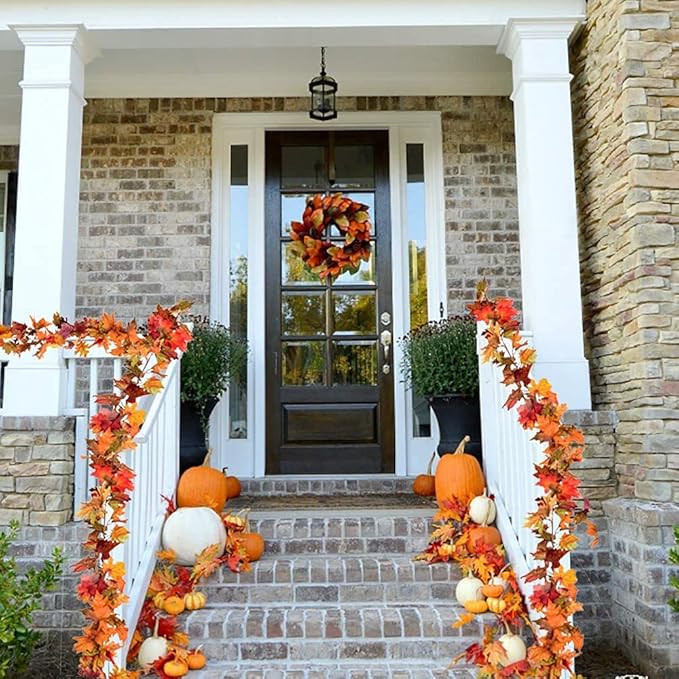 - 【Hanging Garland 】Maple leaf garland is perfect for Indoor, Outdoor, Autumn, Wedding, Door, Fireplace, Thanksgiving, Festival, and Dinner Party, as a kind of hanging plants, it can also decorate balcony, garden, wedding, table, swing stand, stair banisters, restaurants, office.