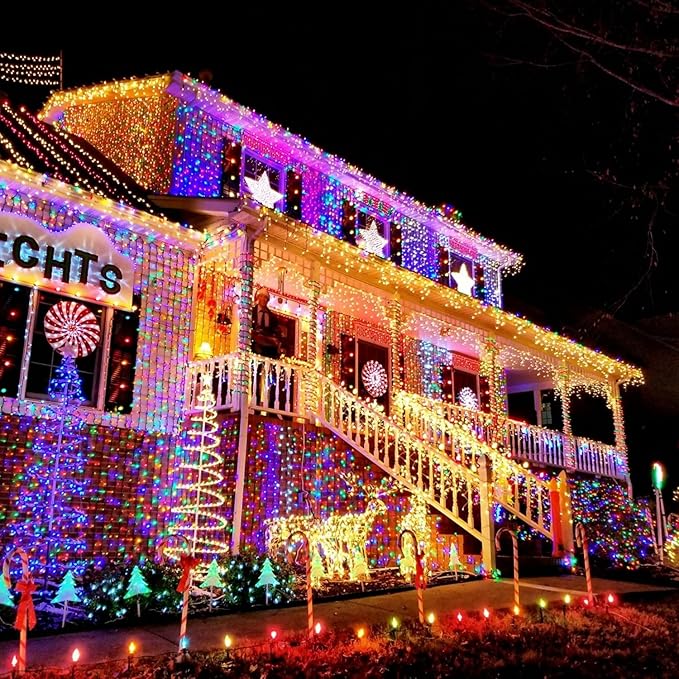 - 8 MODES MULTICOLOR CHRISTMAS LIGHTS: You can choose the most suitable mode according to mood and different scenes. And the Christmas lights have timer, press the button for 3 seconds to set and reset timer. The green light is ON means the timer is ON.