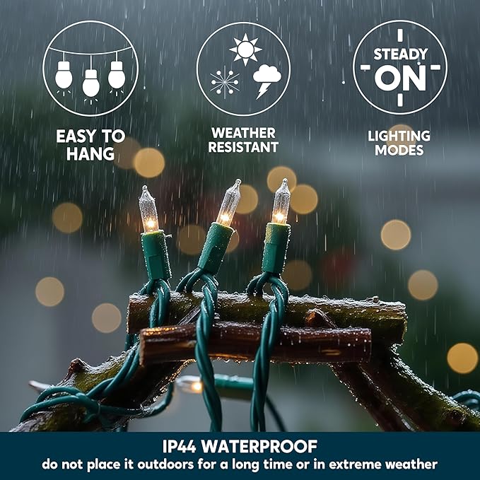 - UL588 CERTIFIED FOR INDOOR & OUTDOOR SAFETY - Ensure holiday peace of mind with our string lights, rigorously tested to meet US UL safety standards. The IP44 waterproof design and durable construction withstand rain and snow, making them perfect for Christmas tree decorations, garden, patio, and year-round use.