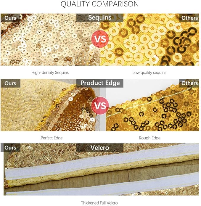 - Sparkly Tree Skirt Material: High-density 3MM sequins with satin mesh,extremely well made. This tree skirt will NOT FALL OFF and NOT SEE THROUNGH.