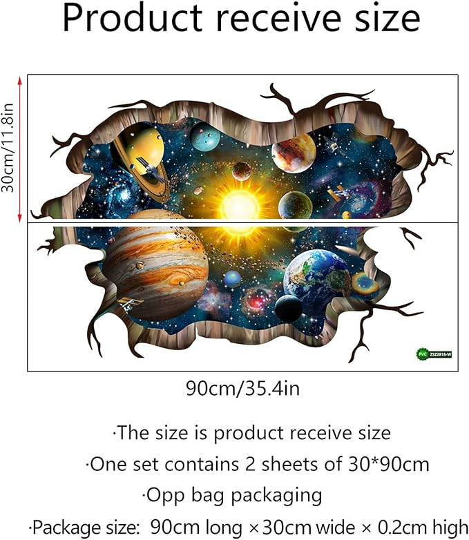 - Package Content: You will get 1 sheets Peel and Stick Removable Out Planet Wallpaper. The Finished size is 35.43inch x 11.8 inch. Large enough to decorate your wall. It can also be adjusted according to your preferences