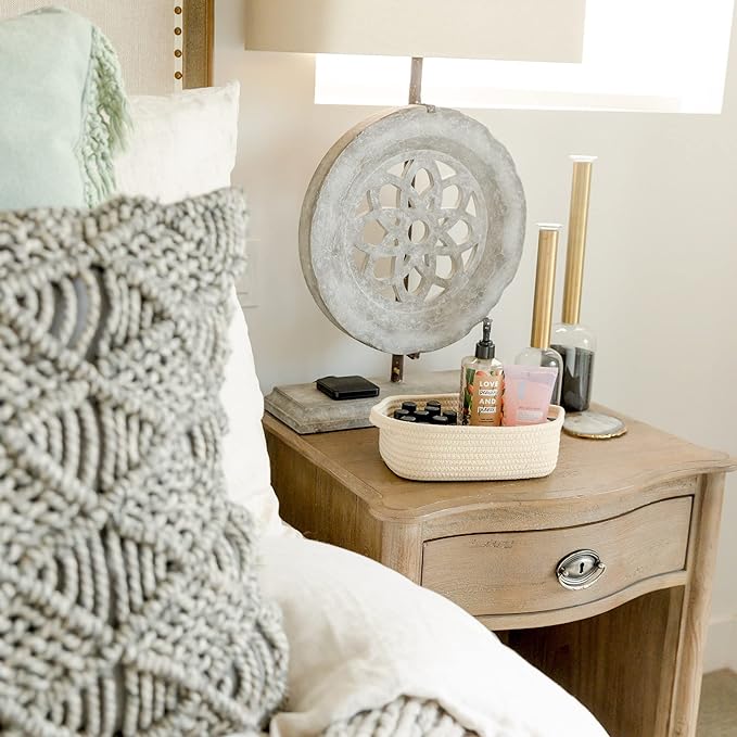 - DOUBLE REINFORCED & SCRATCH-FREE DESIGN: When you’re a full-time mom or dad, you need a storage solution that works just as hard as you do. With reinforced stitching on the handles and base, our woven storage basket set is ready to tackle some heavy-duty actions and will sustain the roughest toddler play. With our soft yet firm handwoven rope basket designs, you’ll never have to worry about scratches or marks being left on your coffee table, shelf, front door table, nightstand or any tabletop.