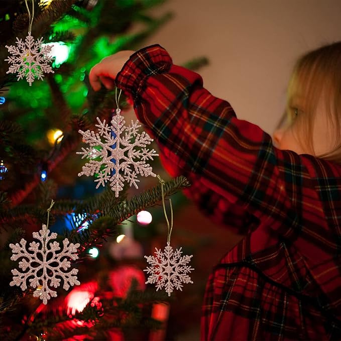 - DESIGNED TO HANG: Big Christmas snowflake ornaments have hole at top for easy hanging except some that are only with the hollow design but they're also able to be hung easily with the string included