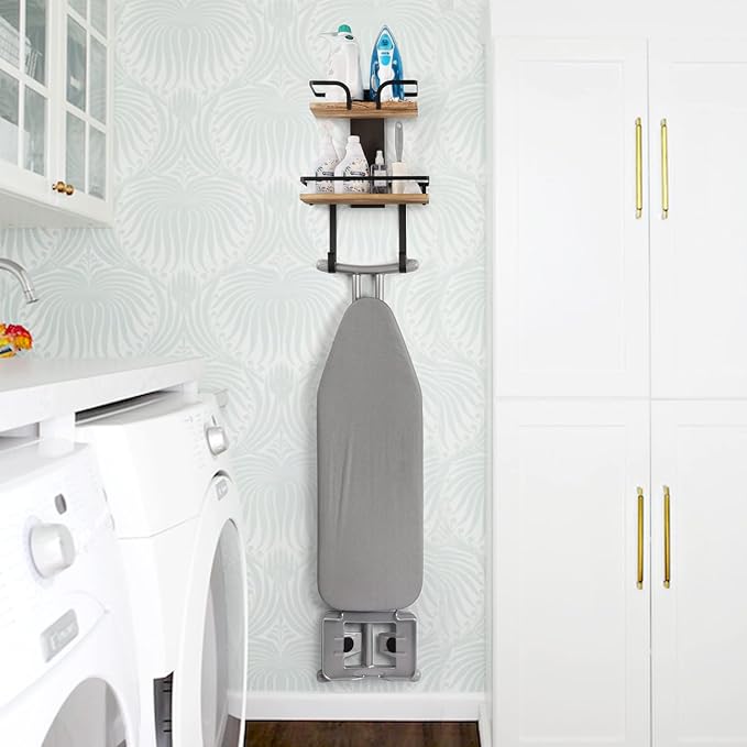 - 【Functional & Versatile】 Apart from the ironing board and the iron, you can store various types of items on the shelves. This holder is also suitable for utility room, sewing room, bathroom, kitchen, or bedroom to keep everyday stuff organized and accessible.