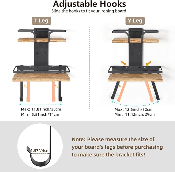 - 【2-Layer Larger Storage】Upgraded 2-layer solid wood design, this ironing board hanger for wall offers twice as much storage space as any other products. It is convenient for you to keep your irons, ironing board and ironing accessories in one location.