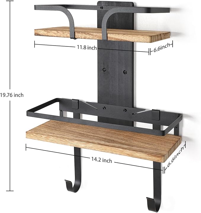 VINAEMO Ironing Board Hanger Wall Mount, 2-Layer Iron and Ironing Board Holder, Laundry Room Shelves Solid Wood with Removable Hooks Home Organization and Storage