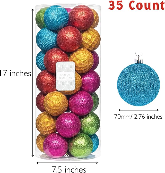 Every Day is Christmas Ornaments, Shatterproof Christmas Tree Ornament Set, Christmas Balls Decoration 35 Count (2.75"/70mm, Textured Rainbow)