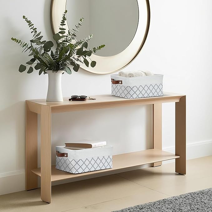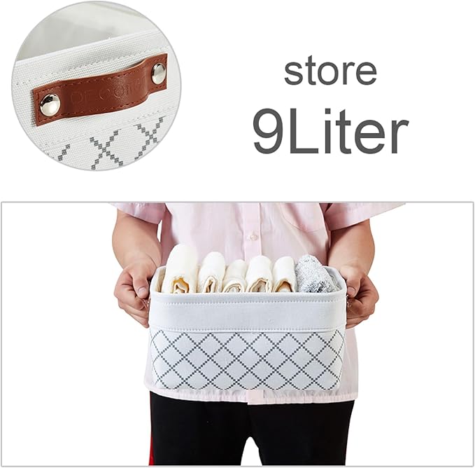 - Durable Design: DECOMOMO's baskets feature a sturdy metal frame, extra thick EVA exterior, polyester interior, 2.5mm MDF fiberboard bottom, and faux leather handles capable of holding up to 15 lbs.