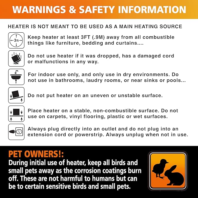 - ADVANCED SAFETY FEATURES: Rest easy knowing that this ETL approved heater prioritizes your safety. With its built-in overheat protection system, it ensures that the temperature stays within safe limits, providing you with peace of mind. Additionally, the safety tip-over switch instantly cuts off power if the heater is accidentally knocked over, minimizing the risk of accidents and promoting a secure environment.