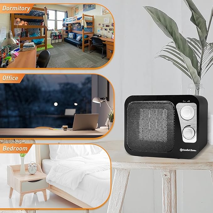 - ELEGANT MID-CENTURY DESIGN: Comfort Zone's Ceramic Heater combines timeless mid-century aesthetics with modern functionality. With its chic retro look and cube-sized display, this ceramic fan-forced heater adds a touch of sophistication to your home decor. The stylish design elevates your home ambiance, creating a classy look and feel that complements any room's aesthetic.