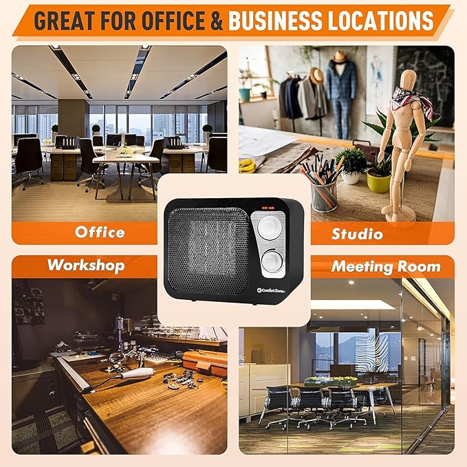 - PORTABLE AND USER-FRIENDLY: Designed for convenience, this heater features a heat-resistant exterior housing and a comfortable molded handle. The cool-to-touch body ensures safe and easy transportation, allowing you to move the unit from one location to another without the risk of burning your fingers. Its compact size makes it perfect for small rooms, office cabins, and other personal spaces where efficient heating is desired.