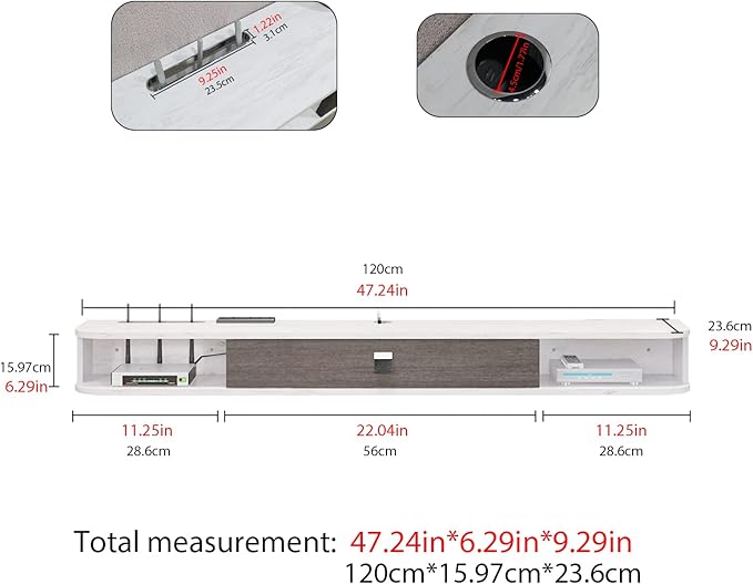 - 【Make your Room Tidy】Equipped with cable hole for hiding set-top box antenna, the floating tv console helps to keep all items in order and easy to get, and keep your items clean and tidy. Contemporary TV wall lamp with creative design is the perfect solution to save home space and optimize space usage.