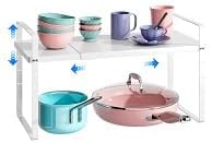 - 【Flexible & Stackable】This cabinet shelf is expandable and stackable, allowing you to adjust the width and height to suit your needs. The width can be extended from 17 inches to 27 inches, and multiple shelves can be stacked together to create multiple levels of storage space.