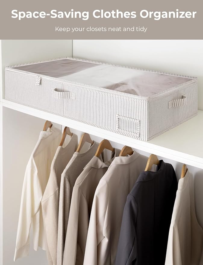 - Clothes organizer for underbed storage ideal for storing out-of-season clothes, shoes, blankets, sweaters, accessories, toys, DVDs, and more in the closets, coatrooms, bedrooms, nurseries, attics, basements, or under cribs at home or in a dorm.