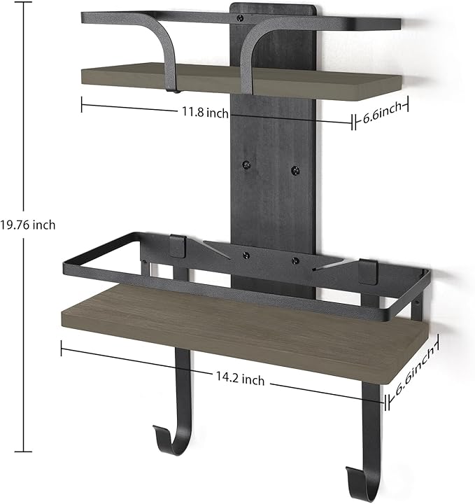 VINAEMO Ironing Board Hanger Wall Mount, 2-Layer Iron and Ironing Board Holder, Laundry Room Shelves Solid Wood with Removable Hooks Home Organization and Storage