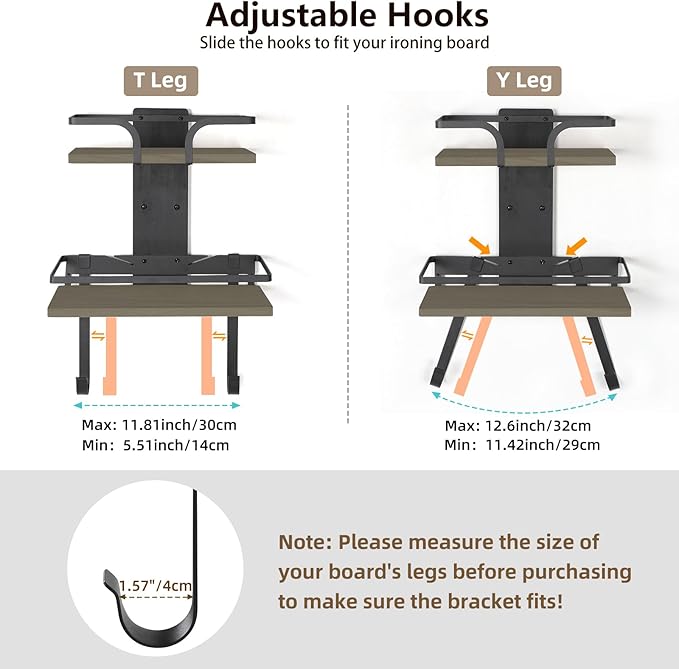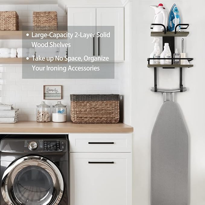 - 【2-Layer Larger Storage】Upgraded 2-layer solid wood design, this ironing board hanger for wall offers twice as much storage space as any other products. It is convenient for you to keep your irons, ironing board and ironing accessories in one location.