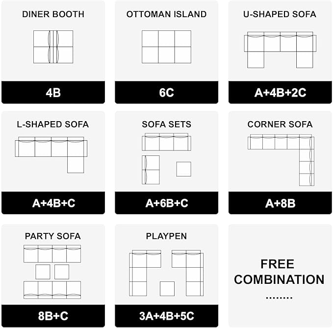 - Soft Cushions: The cushion of this modular sectional sofa you sit on is breathable and soft. Each seat cushion is filled with high resilience foam that gives good support for your body and quickly regains its original shape.