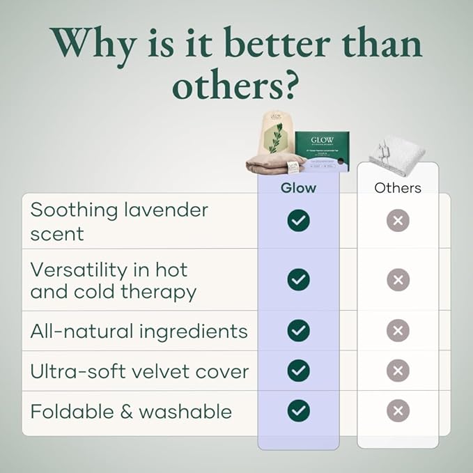 Glow Heating Pad with Flaxseed & Lavender for Hot & Cold Therapy, Microwavable Heat Pad for Back, Neck, Shoulder, Knee, Leg & Menstrual Cramp Relief, Washable & Reusable, One Size Fits All