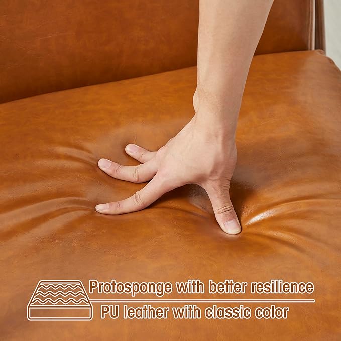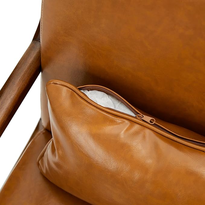 - Design: This vintage-look PU leather armchair is designed with a solid wood frame bringing the mid-century modern style to your home. Also the walnut color frame of this small space chair fits the solemn elegance of your room
