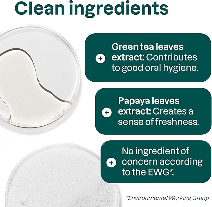 - FRESH BREATH: This adult toothpaste freshens your breath thanks to its formula with green tea extract and papaya leaf, antioxidants that help prevent plaque and strengthen the enamel.