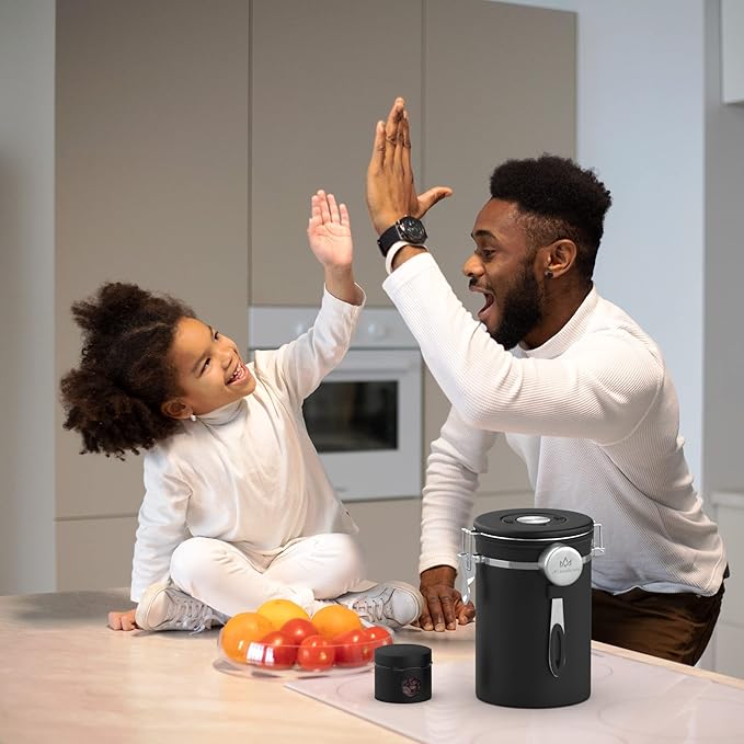 - 【Humanized design】: This coffee storage containers comes with a thoughtful design and an adjustable date tracking wheel above the container, so you can always check the storage date to know the storage time.
