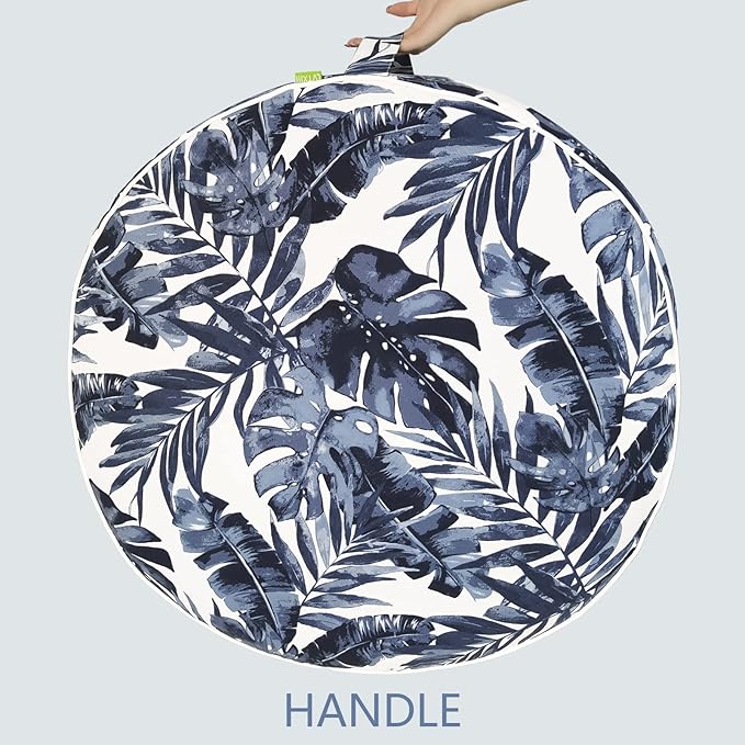 LVTXIII Outdoor/Indoor Inflatable Ottoman, 31"x31"x14" Patio Footrest Stool, Portable Round Pouf Ottoman for Patio Garden, Camping or Home Decoration, Palm Blue