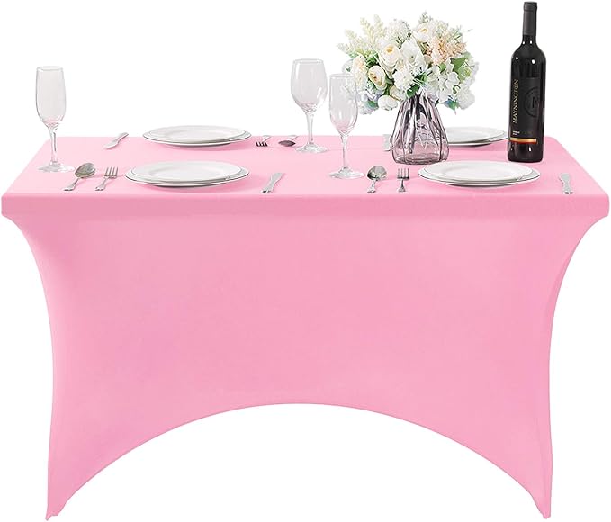 2Pack Spandex Table Cover for 4FT or 6ft or 9ft Table Universal Fitted Stretch Tablecloth for Party, Banquet, Wedding and Events-Pink