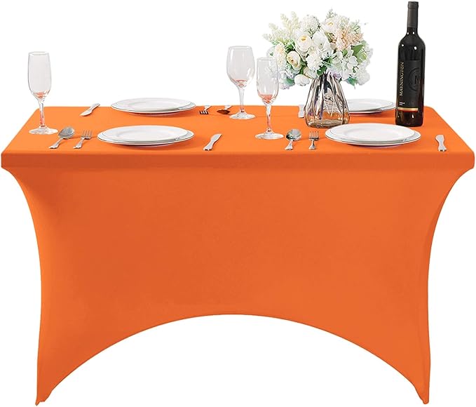 2Pack Spandex Table Cover for 4FT or 6ft or 8ft Table Universal Fitted Stretch Tablecloth for Party, Banquet, Wedding and Events-Orange