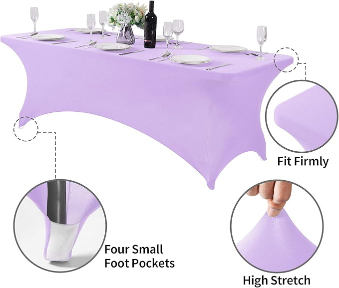 2Pack Spandex Table Cover for 8FT or 4ft or 6ft Table Universal Fitted Stretch Tablecloth for Party, Banquet, Wedding and Events-Lavender
