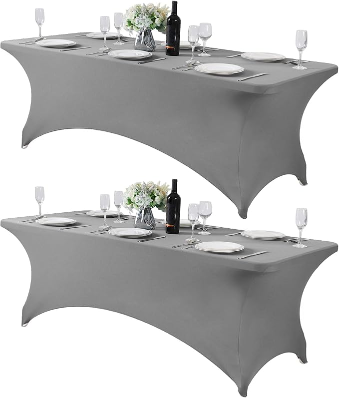 2Pack Spandex Table Cover for 8FT or 4ft or 6ft Table Universal Fitted Stretch Tablecloth for Party, Banquet, Wedding and Events-Gray