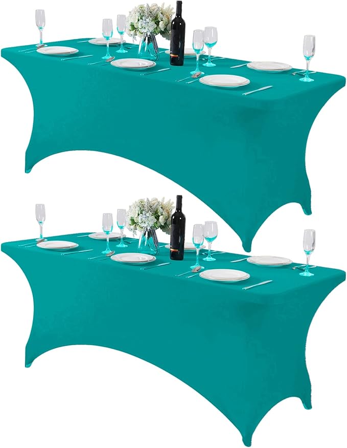 2Pack Spandex Table Cover for 6Ft or 4fT or 8ft Table Universal Fitted Stretch Tablecloth for Party, Banquet, Wedding and Events-Turquoise