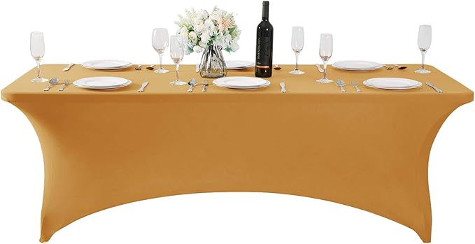 2Pack Spandex Table Cover for 6Ft or 4fT or 8ft Table Universal Fitted Stretch Tablecloth for Party, Banquet, Wedding and Events-Gold