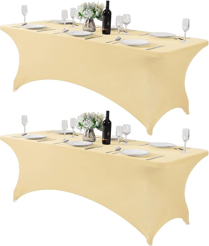 2Pack Spandex Table Cover for 8FT or 4ft or 6ft Table Universal Fitted Stretch Tablecloth for Party, Banquet, Wedding and Events-Champagne