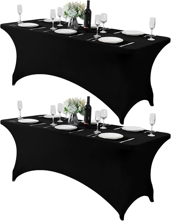 2Pack Spandex Table Cover for 6Ft or 4fT or 8ft Table Universal Fitted Stretch Tablecloth for Party, Banquet, Wedding and Events-Black