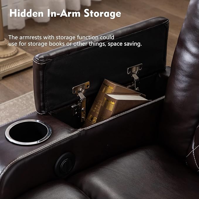 - Dual Cup Holders & Armrests for Storage: whether you are right handed, left handed, or just have a drink in each hand, your new recliner has the perfect spot for your drinks. 2 built-in cup holders offer a supper theater experience at home. Armrest with storage function could use for storage books or other things, space saving.