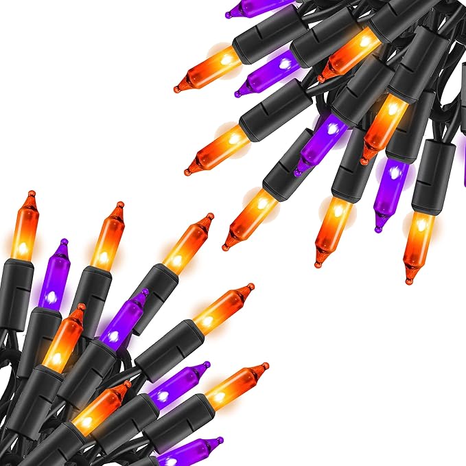 - Purple and Orange Halloween Lights: Includes 2 packs of 20ft mini string lights with 100 incandescent bulbs for festive illumination.
