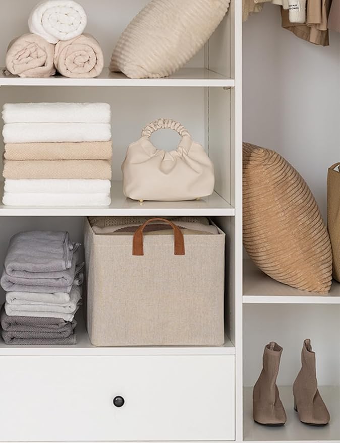 - Use Across Scenario: These shelf storage bins are sturdy enough to be used as clothing containers, helping you effectively organize your bedroom, living room, laundry room, or dorm room with simple and elegant color blocking designs to make your room tidier and prettier.