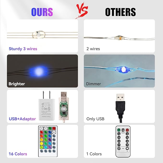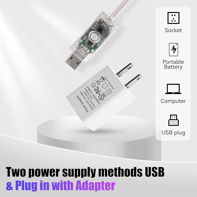 - USB Plug In: USB plug design, you can use mobile power bank, USB hub, laptop, TV, mobile power, computer, to operate the curtain lights, conveniently portable and movable, without worry about the power source. High-quality copper wire is flexible. You can twist wire into any shape you like for different decor themes.