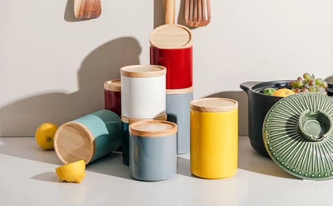- Ceramic Material - Sweejar food storage containers are made of food grade, smooth porcelain. The containers with wooden lid and rubber seal to ensure a true airtight seal and lightproof. They are good for maintaining food and seasoning fresh.