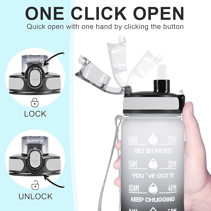 - 【Humanized Design】Water bottles with times to drink can quick open with one hand. The flip-top lid is used a secure lock, making it dust-free and leak-proof. Time water bottle is portable, light, and easy to use.