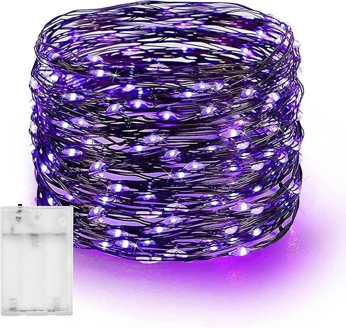 Dazzle Bright Fairy String Lights, 20 FT 60 LED Copper Wire Battery Operated Waterproof Lights, Halloween Decorations for Indoor Home Room Outdoor Garden Patio Party Decor (Purple, 1)