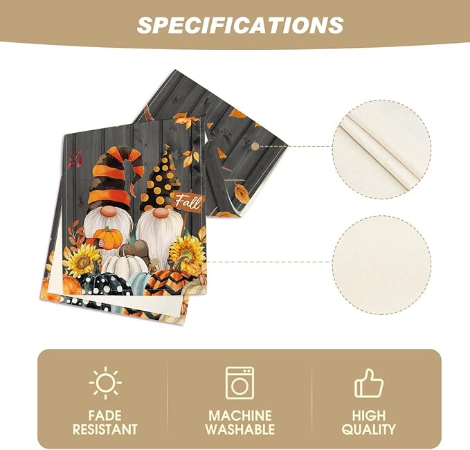 Artoid Mode Fall Gnomes Pumpkins Sunflower Maple Leaves Thanksgiving Table Runner, Seasonal Harvest Vintage Kitchen Dining Table Decoration for Indoor Outdoor Home Party Decor 13 x 108 Inch