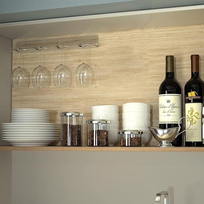 - ★Easy Installation: After removing the protective film, it only takes a few minutes to install the wine glass holder. The necessary screws and extension aiming tools are provided, the shelf cannot be taped or glued. You can optimize and save space by storing shelves under cabinets for better planning of your kitchen. Two types of installation are possible: forward or reverse.