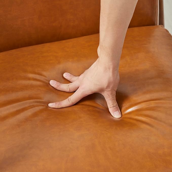 - Design: This vintage-look PU leather armchair is designed with a solid wood frame bringing the mid-century modern style to your home. Also the walnut color frame of this small space chair fits the solemn elegance of your room