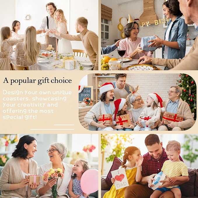 - A POPULAR GIFT CHOICE: Design your own unique coasters, showcasing your creativity and offering the most special gift! Customize one-of-a-kind coasters for friends, family, or colleagues, and they will be delighted by the thoughtful surprise! Each coaster carries your personal touch and creativity, making it a perfect gift that combines functionality and elegance.